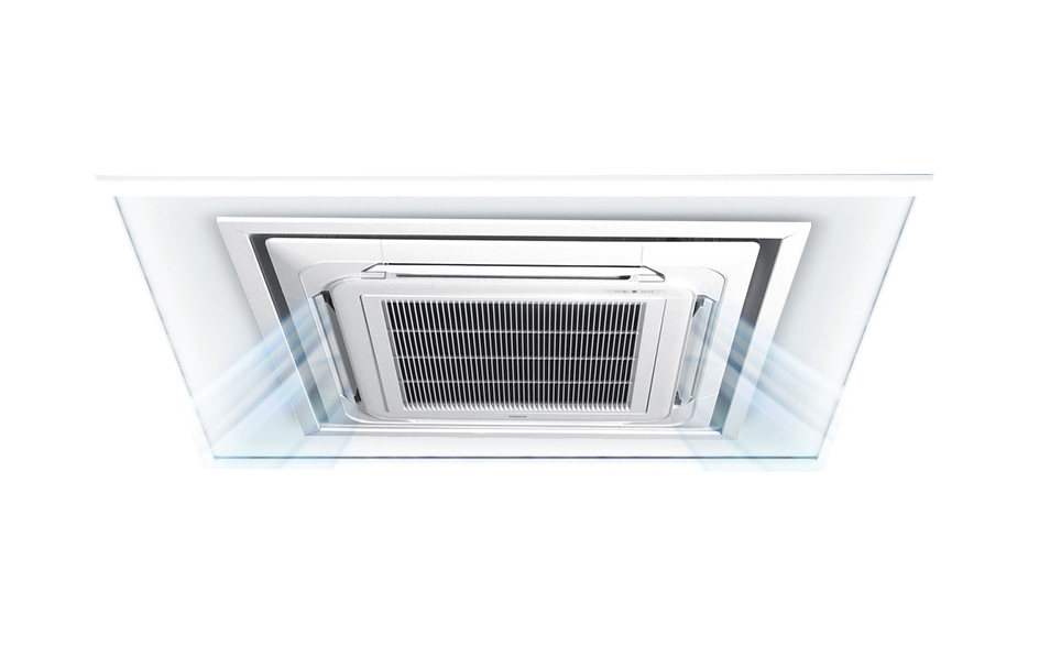 Ceiling cassette A/C units are mounted as the name suggests; in the ceiling. This is most effective in a suspended or “floating” ceiling where there is room to accommodate the unit.
